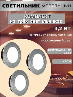 Светильник мебельный встраиваемый светодиодный 3,2 Вт 3 шт