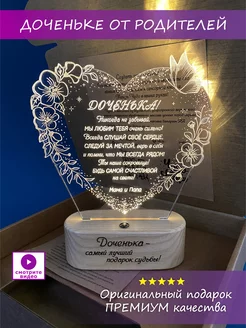 Ночник 3д Сердце с надписью в подарок дочери от мамы и папы