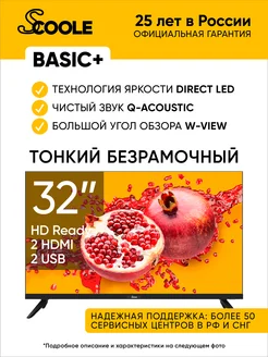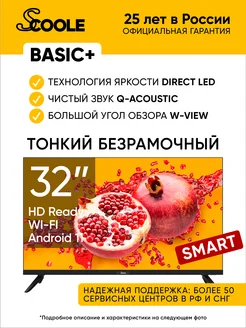 Телевизор 32", Smart TV, HD, тонкий безрамочный