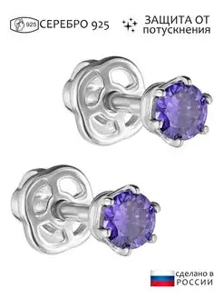 Серебряные гвоздики-пусеты с фиолетовым нанокристаллом 3 мм