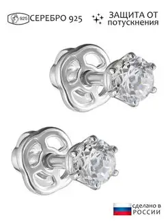 Серебряные серьги-пусеты с белым нанокристаллом 3 мм
