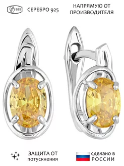 Серебряные серьги с желтым нанокристаллом