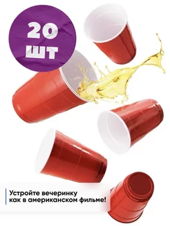 Красные одноразовые бирпонг стаканы для вечеринки PARTY CUPS