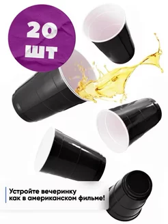 Черные одноразовые бирпонг стаканы для вечеринки PARTY CUPS