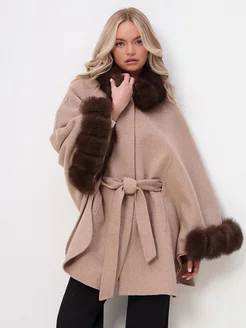 Пальто пончо с натуральным мехом
