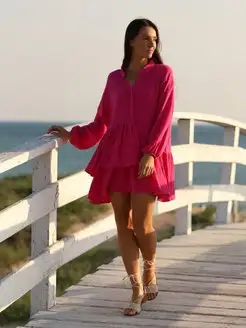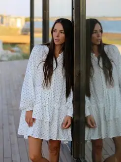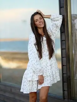 Платье летнее из муслина с длинным рукавом