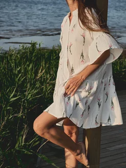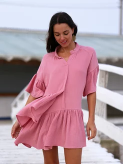 Платье летнее из муслина с коротким рукавом