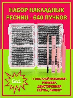 Набор накладных ресниц в комплекте с пинцетом и клеем