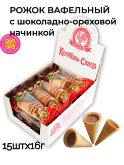 Рожок вафельный с шоколадно-ореховой начинкой 15шт, 16гр