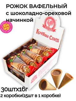 Рожок вафельный с шоколадно-ореховой начинкой 30шт, 16гр