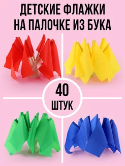 Цветные флажки на деревянной палочке для детского сада 40 шт