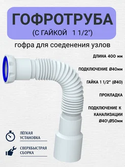 Гофротруба для сифона длина 40 см с гайкой на 1 1 2"