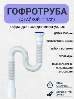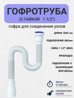 Гофротруба для сифона 150 см с гайкой на 1 1 2