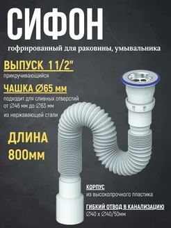 Сифон гофрированный D220, нержавеющая чашка, длина 800 мм