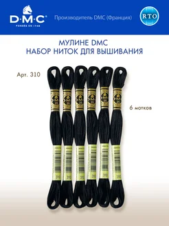 Мулине 310 набор ниток для вышивания 6 мотков ДМС