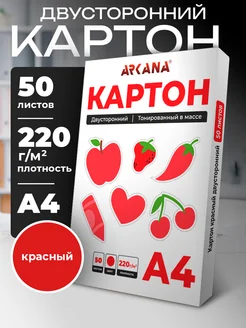 Красный картон двусторонний а4 тонированный в массе 50 л