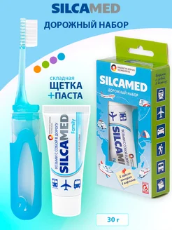 Дорожный набор зубная паста + зубная щетка, цвет синий