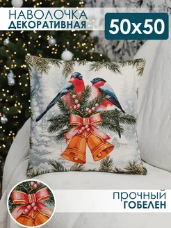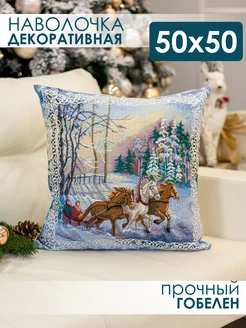 Наволочка декоративная 50х50 на молнии новогодняя гобелен