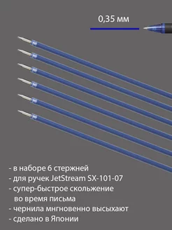 Набор из 6 синих стержней для ручек Jetstream SX-101 0,7мм