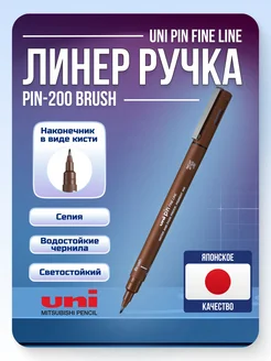 Линер сепия Uni Pin Fine line BRUSH кисть