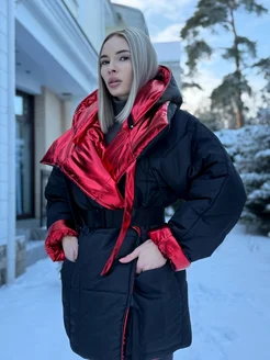 Пуховик зимний длинный с капюшоном оверсайз