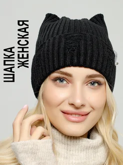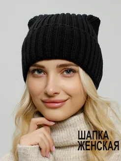 Шапка женская осенняя-весенняя тонкая рваная с ушками