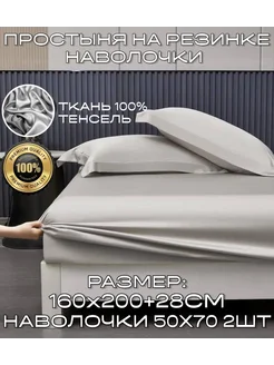 Простынь на резинке 160х200 2шт наволочки 50х70 Тенсель