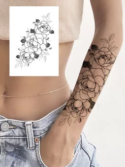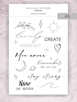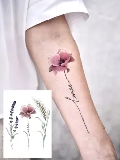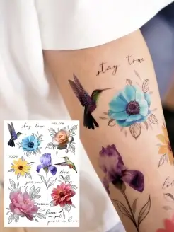 Тату переводные временные А5 цветы, надпись, акварель