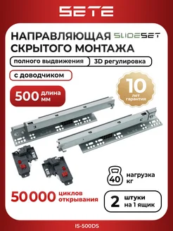 Направляющие для ящиков 500 мм скрытого монтажа с доводчиком