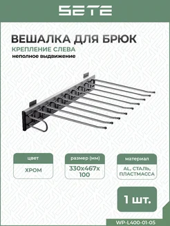 Выдвижная вешалка в шкаф для брюк крепление слева