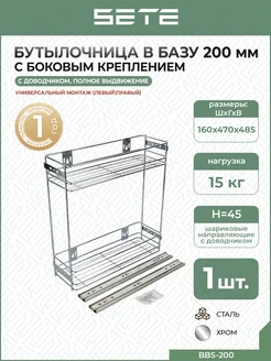 Бутылочница выдвижная для кухни 200 мм с доводчиком