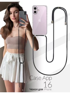 Чехол на iphone 16 прозрачный силиконовый с шнурком
