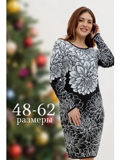 Платье теплое нарядное вязаное жаккардовое больших размеров