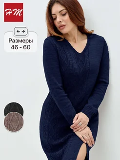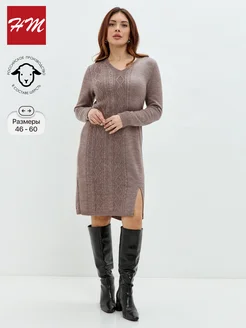 Платье шерстяное теплое вязаное больших размеров