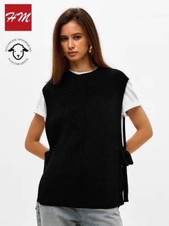 Жилет вязаный из шерсти на завязках свободный