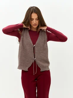 Жилет вязаный из шерсти с завязками