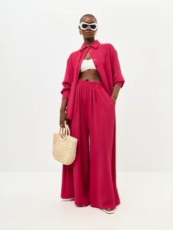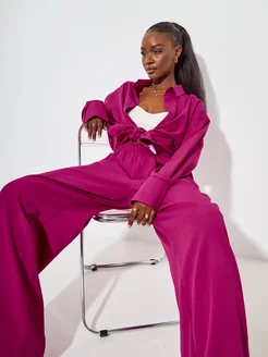 Брючный костюм оверсайз летний двойка с рубашкой