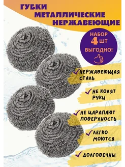 Губки для посуды металлические, 4 шт