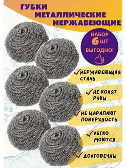 Губки для посуды металлические, 6 шт
