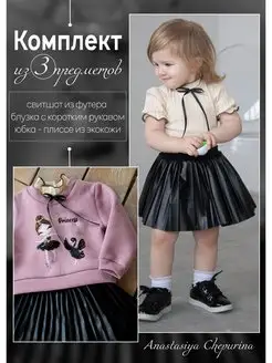 Весенний костюм для девочки на флисе с юбкой