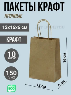 Подарочные маленькие крафт пакеты с ручками 12х16х6