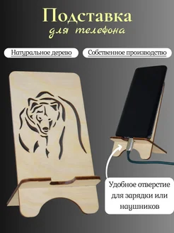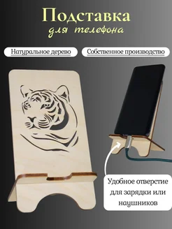 Подставка для телефона деревянная, настольная. Тигр