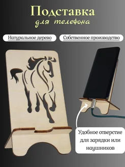 Подставка для телефона деревянная, настольная. Лошадь