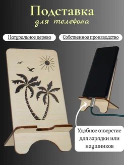 Подставка для телефона деревянная, настольная. Пальмы