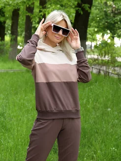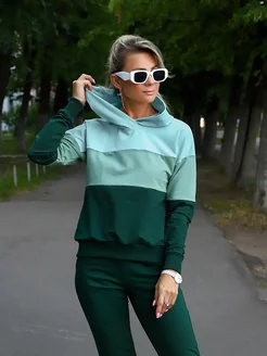 Спортивный костюм женский оверсайз с капюшоном однотонный