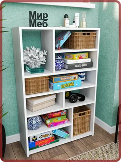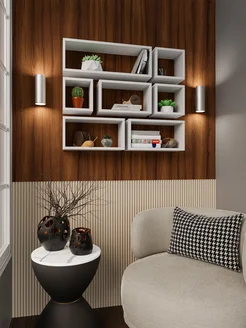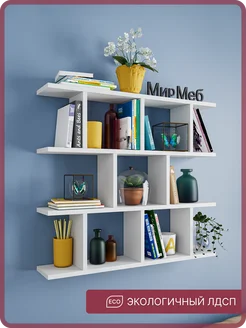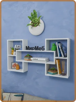 Полка настенная для книг, в ванную, деревянная белая