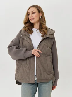 Куртка осенняя с вязанными рукавами стеганая с капюшоном