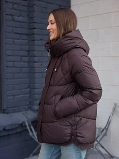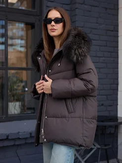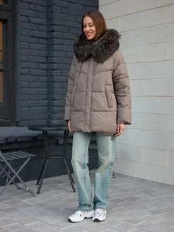 Куртка зимняя удлиненная с натуральным мехом теплая