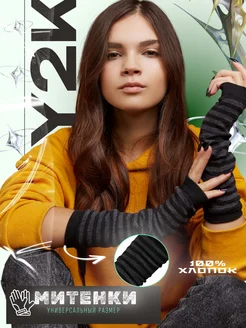 Митенки длинные в полоску в стиле Y2K серо-черные