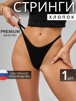Стринги хлопок базовые на тонких лямках с V-образным вырезом
